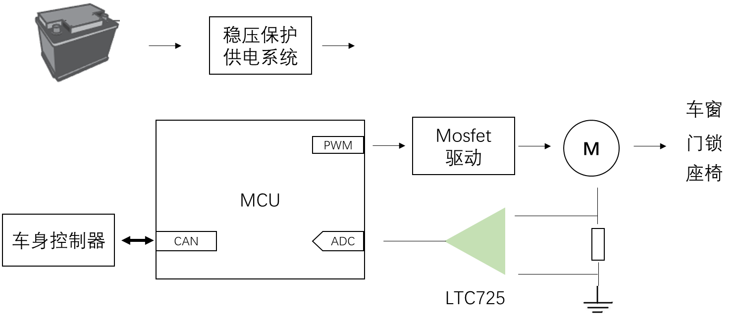 汽车智能化致使更多的电机在车载系统中得到使用,如车窗,门锁和座椅等,汽车环境中越来越多的电机可以自动调节出最舒适的环境。在这么多的电机使用时要保证其运行安全稳定,就需要采集电机运行电流。先积LTC725具有SOT-23封装,体积小布线灵活,适合同个系统大量使用应对更多的电机,11Mhz的带宽,350uV失调电压,低压供电提高性价比。